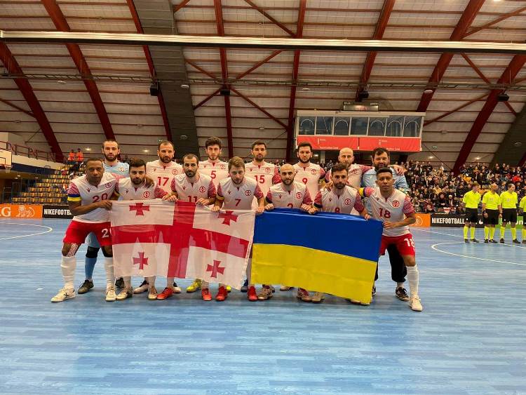 А збірна Грузії з футзалу із синьо-жовтим прапором висловила свою пітримку Україні перед товариським матчем із Нідерландами.