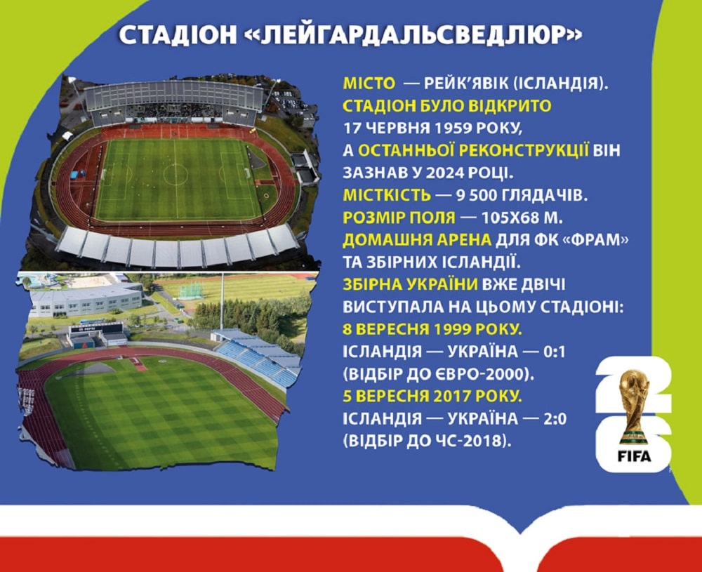 Стадіон із важкою для вуха українця назвою «Лейгардальсведлюр» у Рейк’явіку, де сьогодні у відборі ЧС-2026 зустрінуться збірні Ісландії та України (початок гри — о 21:45 за Києвом), добре знайомий нашій національній команді.