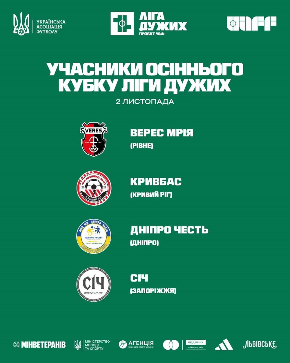 2 листопада на стадіоні «Черкаси-Арена» пройде Осінній кубок «Ліги дужих» — турнір, що збере чотири команди ветеранів і захисників України.