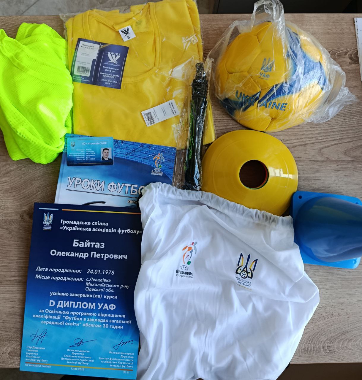 Кожен випускник отримав від УАФ і ООФА подарунковий набір (рюкзак, фішки, конуси, маніжки, насос і посібник із конспектами уроків), а також диплом про успішне проходження курсів.