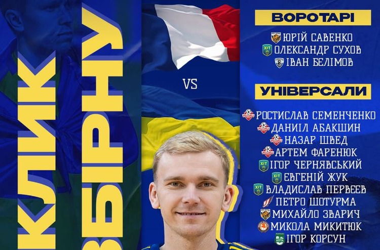 Головний тренер збірної України з футзалу Олександр Косенко оприлюднив склад команди на навчально-тренувальний збір та товариський поєдинок із Францією.