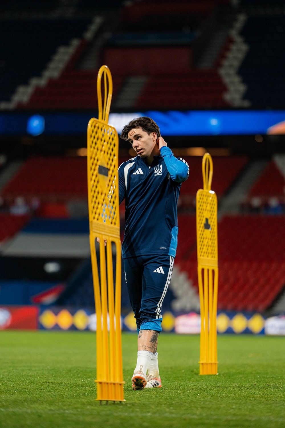 Сьогодні ввечері збірна України провела традиційне передматчеве тренування на паризькому стадіоні «Парк де Пренс», де завтра відбудеться її поєдинок із командою Франції в межах відбору ЧС-2026 (початок — о 21:45 за Києвом).