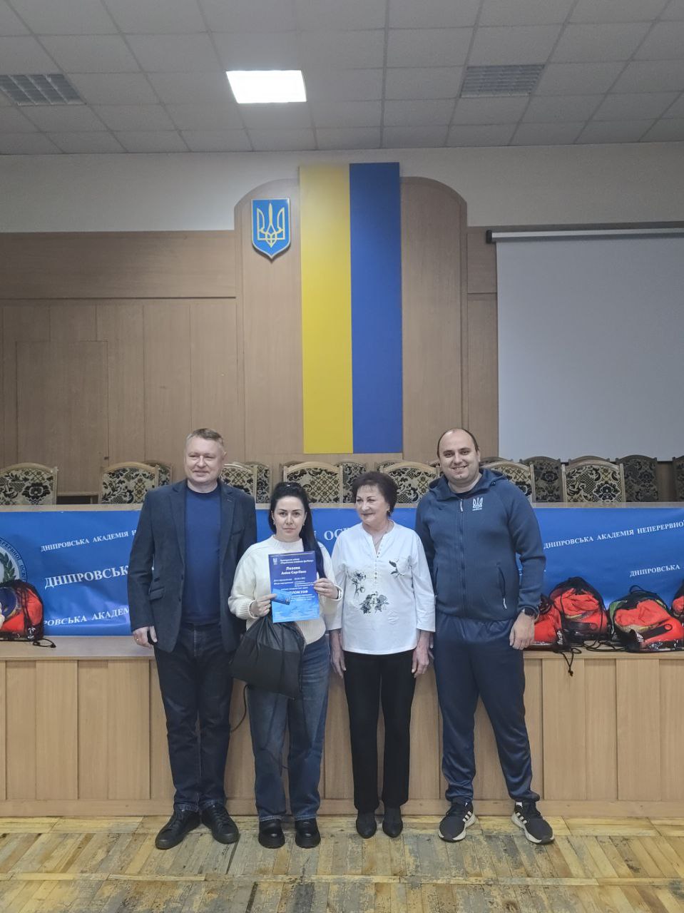 Окрім сертифікатів, випускники курсів для якісного проведення уроків футболу та інших футбольних заходів у своїх школах отримали набори інвентарю та посібники зі шкільного футболу. Їх вручили виконавчий директор Асоціації футболу Дніпропетровської області Ярослав Дерев’янко, ректор Дніпровської академії неперервної освіти Віктор Сиченко та завідувачка кафедри виховання та культури здоров’я академії Лариса Лаврова.