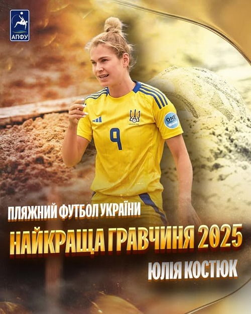 Експертне журі Асоціації пляжного футболу України, керівництво, тренери та експерти визнали Юлію Костюк найкращою гравчинею українського бічсокеру 2025 року.
