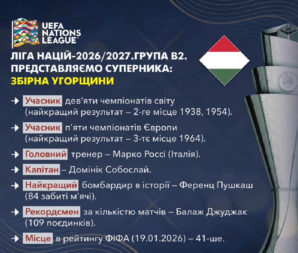 Ліга націй-2026/2027. Представляємо суперника: збірна Угорщини
