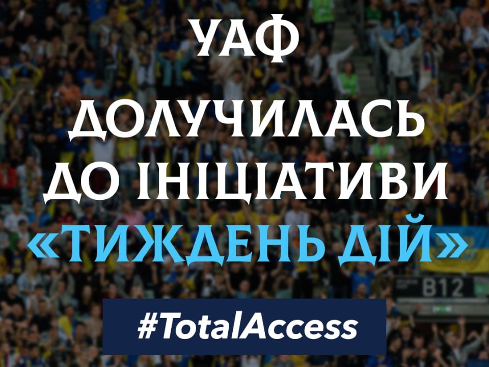 Українська асоціація футболу долучилася до Тижня дій #TotalAccess – наймасштабнішої європейської ініціативи зі створення інклюзивного середовища у футболі.