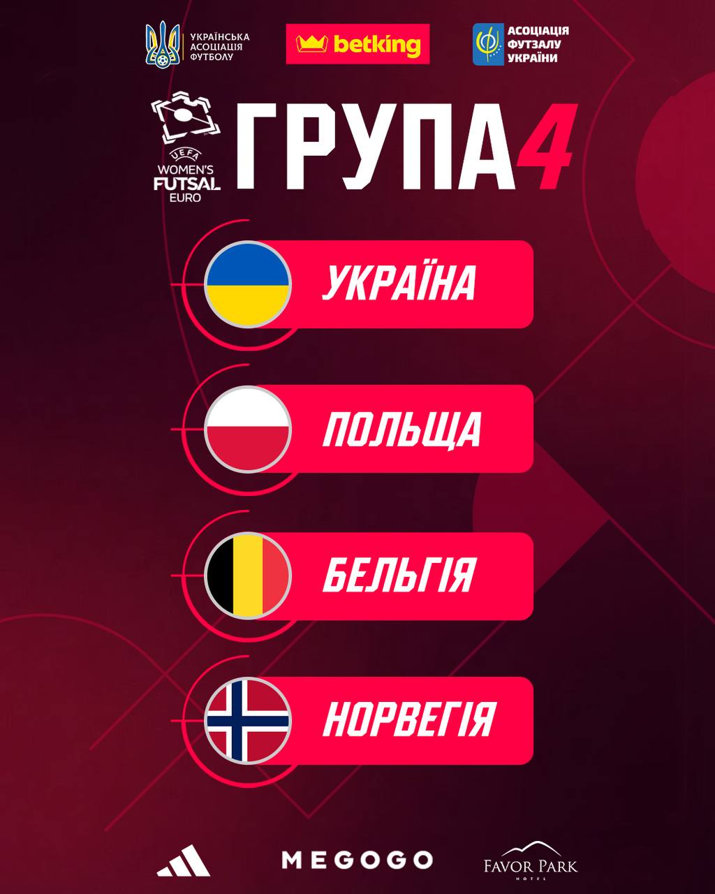 Група 4: Україна, Польща, Бельгія, Норвегія.